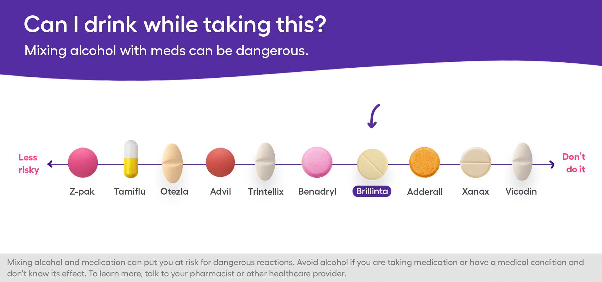 Taking Brilinta and drinking alcohol is not an ideal combination. However, in most cases, light-to-moderate alcohol consumption is not likely to cause significant harm with Brilinta. Instead, it is strongly recommended to avoid excessive alcohol consumption while taking Brilinta.