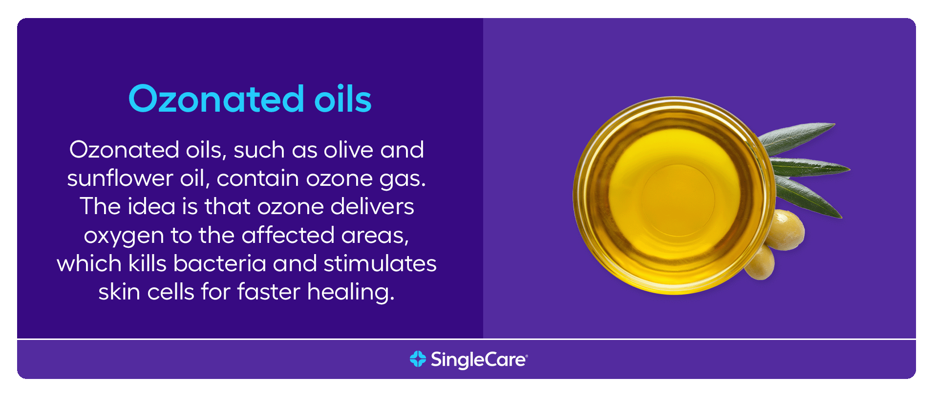Ozonated oils, such as olive and sunflower oil, contain ozone gas. The idea is that ozone delivers oxygen to the affected areas, which kills bacteria and stimulates skin cells for faster healing. One study found that ozonated oil is an effective home remedy for toenail fungus caused by certain strains. Researchers tested ozonized sunflower oil on 101 samples of yeast. The oil was an effective treatment against several fungal strains. To try this remedy, clean and dry your foot first. Gently massage a small amount of ozonated oil into the skin, working it into the affected nails and around the entire toe.