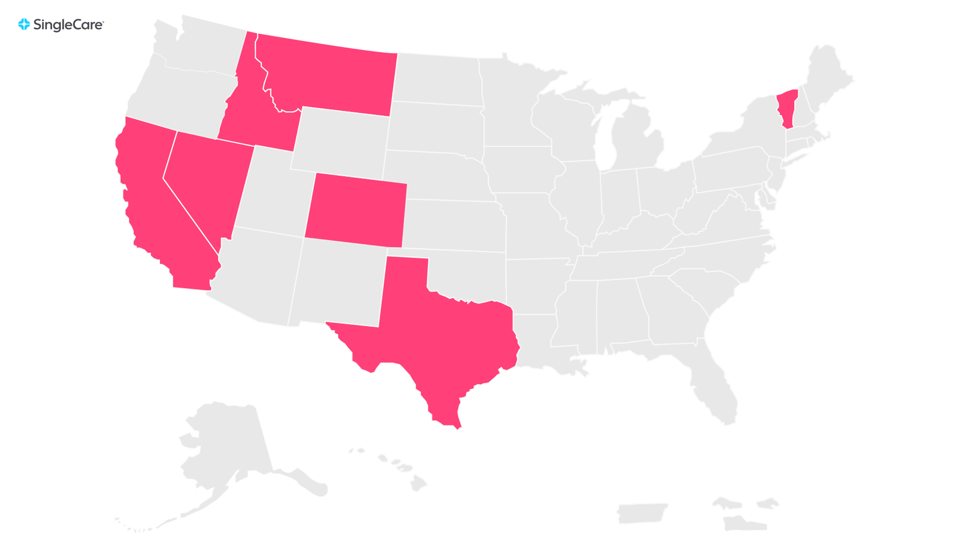 (California, Colorado, Idaho, Nevada, Texas, Vermont, and Montana)