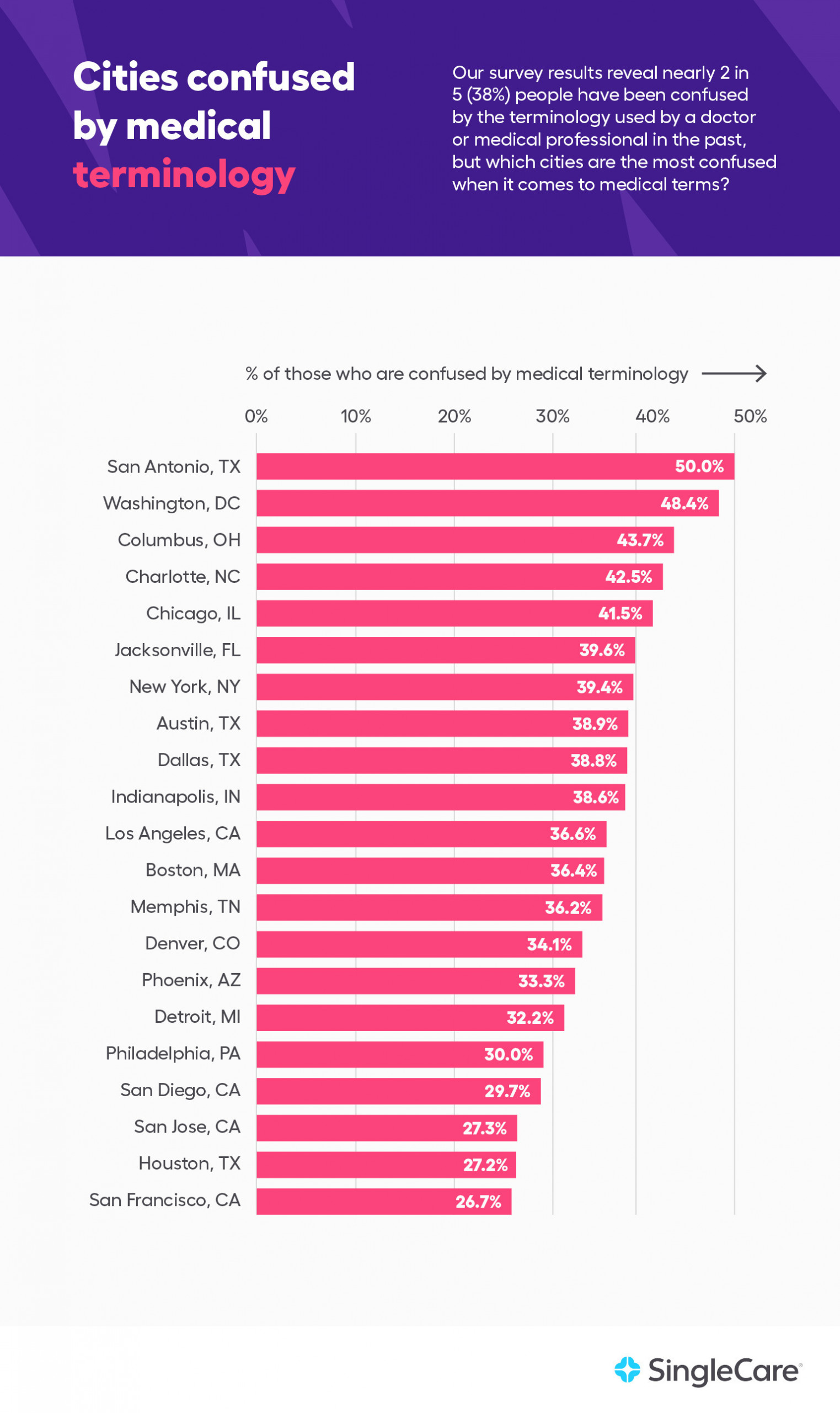 We surveyed Americans to reveal how many people are confused by their doctor’s orders. The results revealed that people in San Antonio are the most confused after visiting their doctor, with half of the people surveyed (50%) stating that they’ve been left confused by medical terminology.