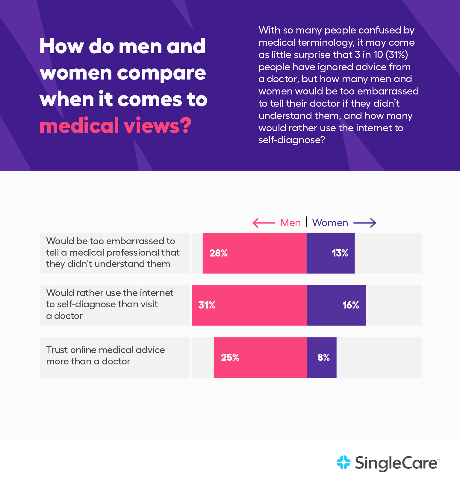 The graphic below highlights how many people trust the internet over their doctor, as well as how many people are too embarrassed to admit that they didn’t understand the terminology their healthcare provider used.