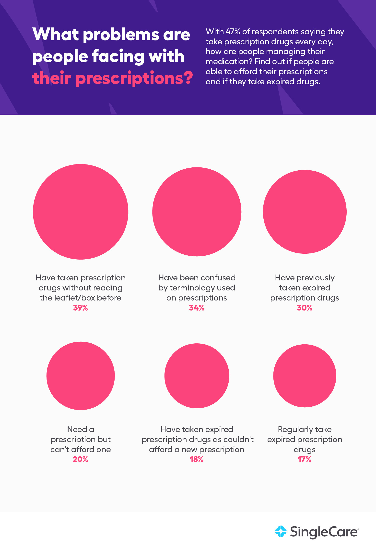 30% of people need a prescription they can’t afford while 34% admit they take out-of-date prescription drugs regularly.