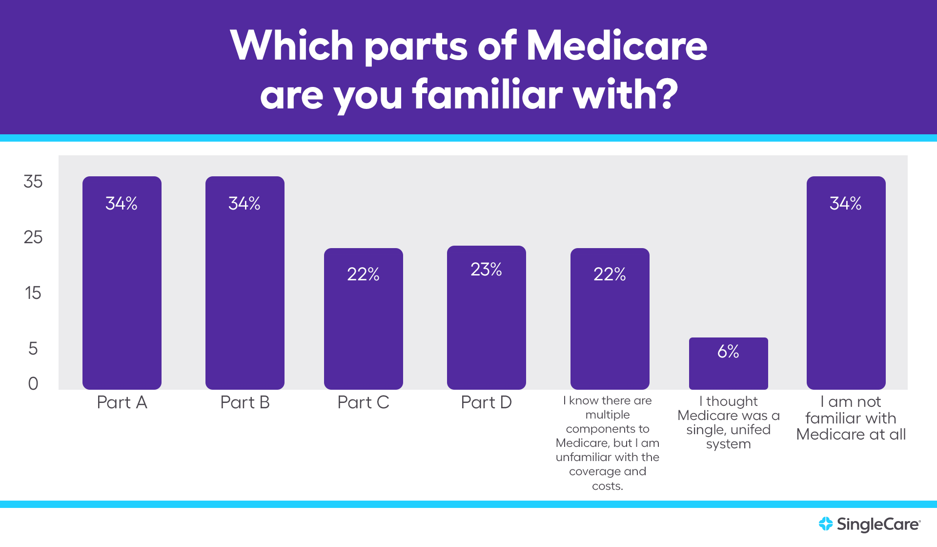 El 22% de los encuestados sabe que Medicare tiene múltiples componentes, pero no está familiarizado con la cobertura ni los costos.